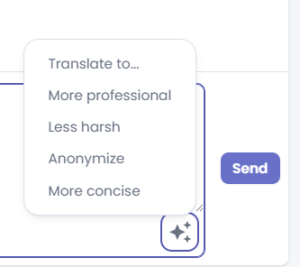 The AI Writing Assistant helps employees and managers communicate more clearly and professionally in surveys and comments. Whether it’s crafting anonymous, well-phrased feedback or writing empathetic responses, this feature provides instant language support directly within the platform. By improving the quality and tone of both input and replies, it strengthens dialogue across the organization, leading to richer insights and greater trust.