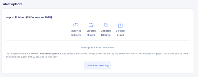 Note: It is possible to check both boxes when uploading the file, then both configurations will apply for the CSV file upload.